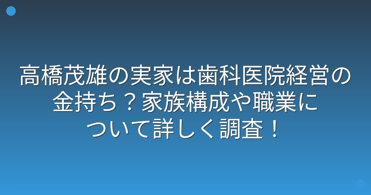 高橋茂雄さんの実家は歯科医院を経営しているという情報が複数の芸能情報サイトで報じられています。