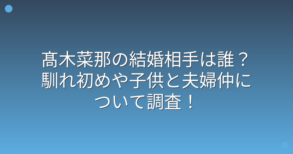 そこで今回は、髙木菜那さんの結婚相手や馴れ初め、子供や夫婦仲について詳しく見ていきましょう!