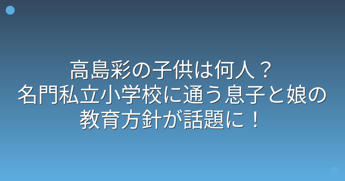 そこで今回は、高島彩さんの子供たちについて、人数や教育方針など、詳しく見ていきましょう!