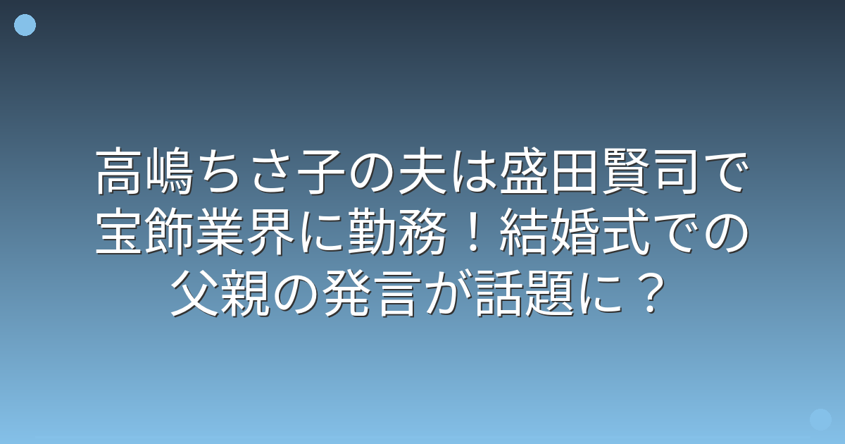 そこで今回は、高嶋ちさ子さんの夫・盛田賢司さんについて、職業や馴れ初め、そして最新の話題となった結婚式エピソードまで詳しく見ていきましょう!
