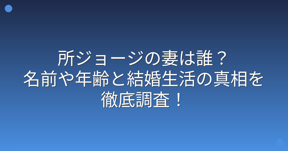 そんな所ジョージさんの妻について、気になっている方も多いのではないでしょうか。