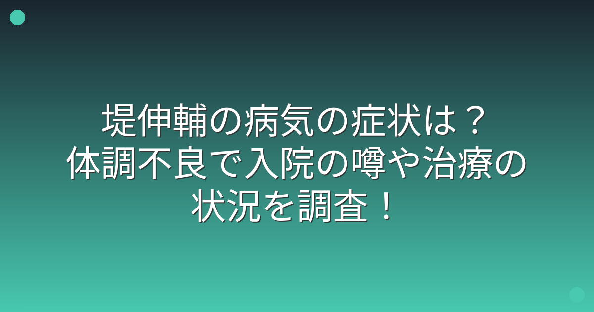 そこで今回は、堤伸輔さんの病気の症状や体調、入院の真相、そして治療の状況について詳しく見ていきましょう!