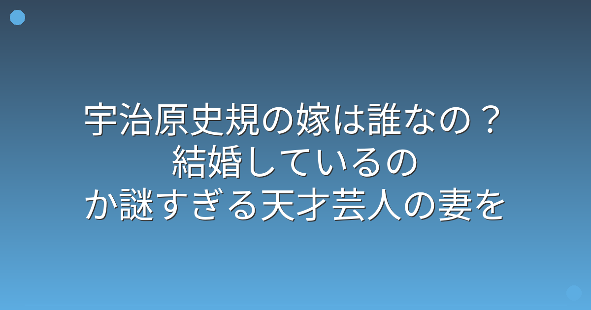 まず最も気になる宇治原史規さんの嫁についてですが、2025年11月現在、宇治原史規さんは公式に結婚を発表していません。