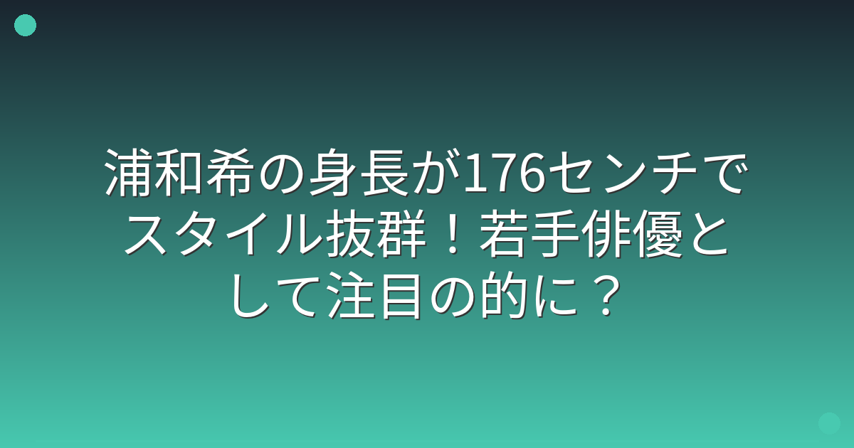 浦和希さんは身長176センチと、若手俳優として恵まれた体格を持っており、そのスタイルの良さは多くの注目を集めています。