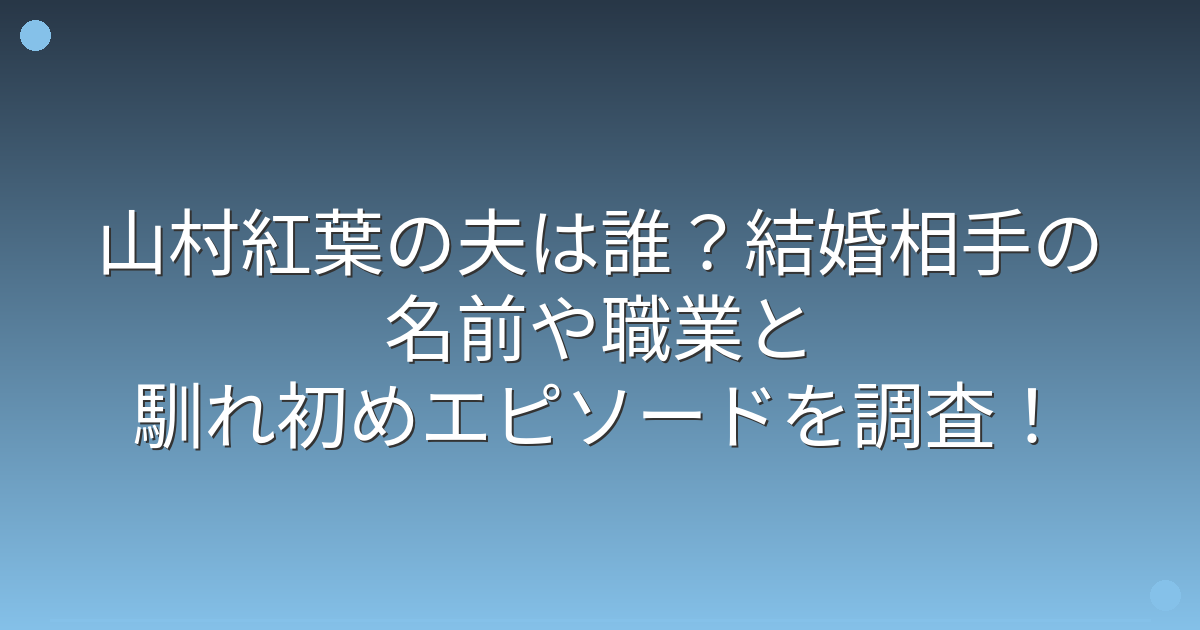 そこで今回は、山村紅葉さんの夫について、結婚の有無や相手の情報、馴れ初めなど詳しく見ていきましょう!