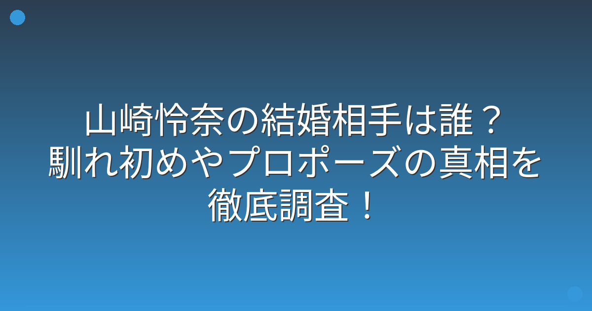 最近では「山崎怜奈さん、結婚してる?」「お相手は誰?」といった話題がSNSで急上昇しています。