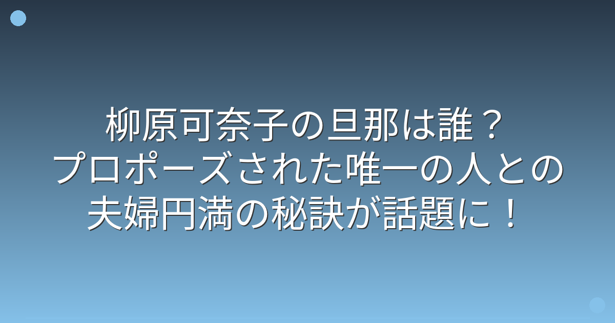 そこで今回は、柳原可奈子さんの旦那さんについての情報や、夫婦円満の秘訣について詳しく見ていきましょう!