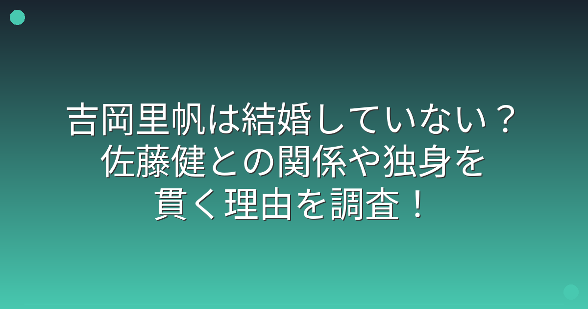 吉岡里帆さんが結婚していない理由としては、仕事への専念、過去の恋愛経験がトラウマになっている可能性、理想のタイプに出会えていないことなどが考えられます。